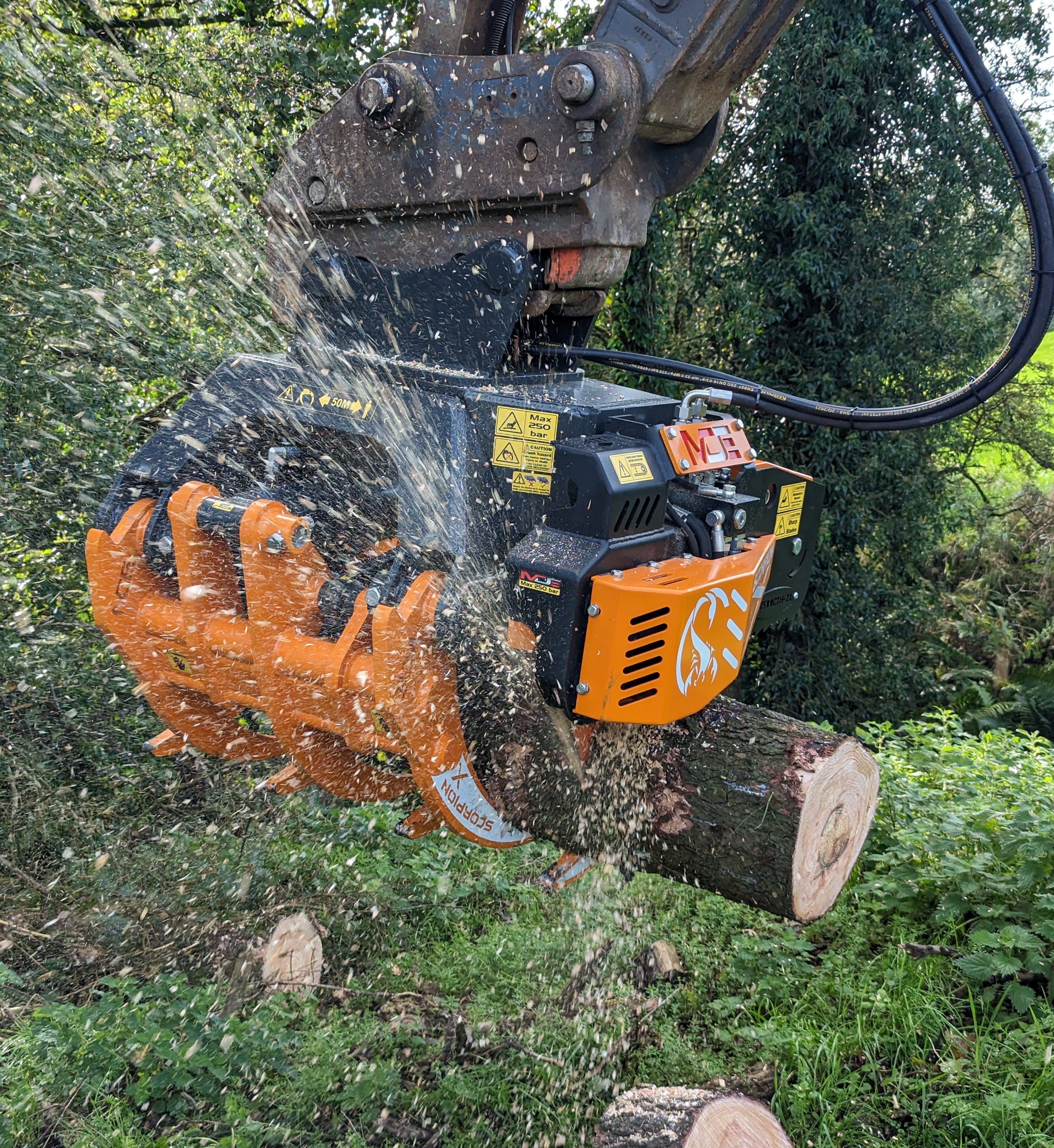 L’un des grands atouts du Scorpion SX est sa capacité à être utilisé à la fois comme grappin et comme scie hydraulique. Cela permet à l’opérateur de saisir des arbres ou des matériaux, de les couper proprement grâce à la scie intégrée, et de les déposer en toute sécurité. Cette double fonctionnalité fait du Scorpion SX un outil polyvalent, indispensable pour les opérations de coupe, d’abattage et de manutention dans des secteurs tels que la foresterie, l’entretien des terrains, et la construction.