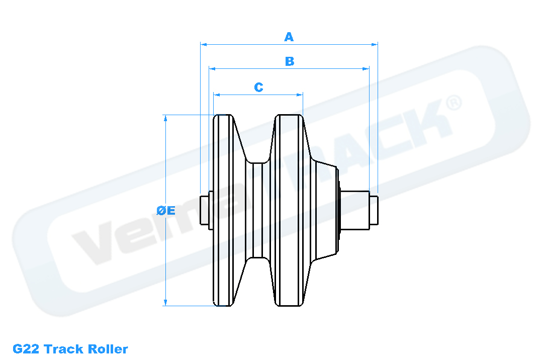 +147960 GALET INFERIEUR Galet double flasque, diamètre des flasques = 125mm, longueur total = 111.7mm