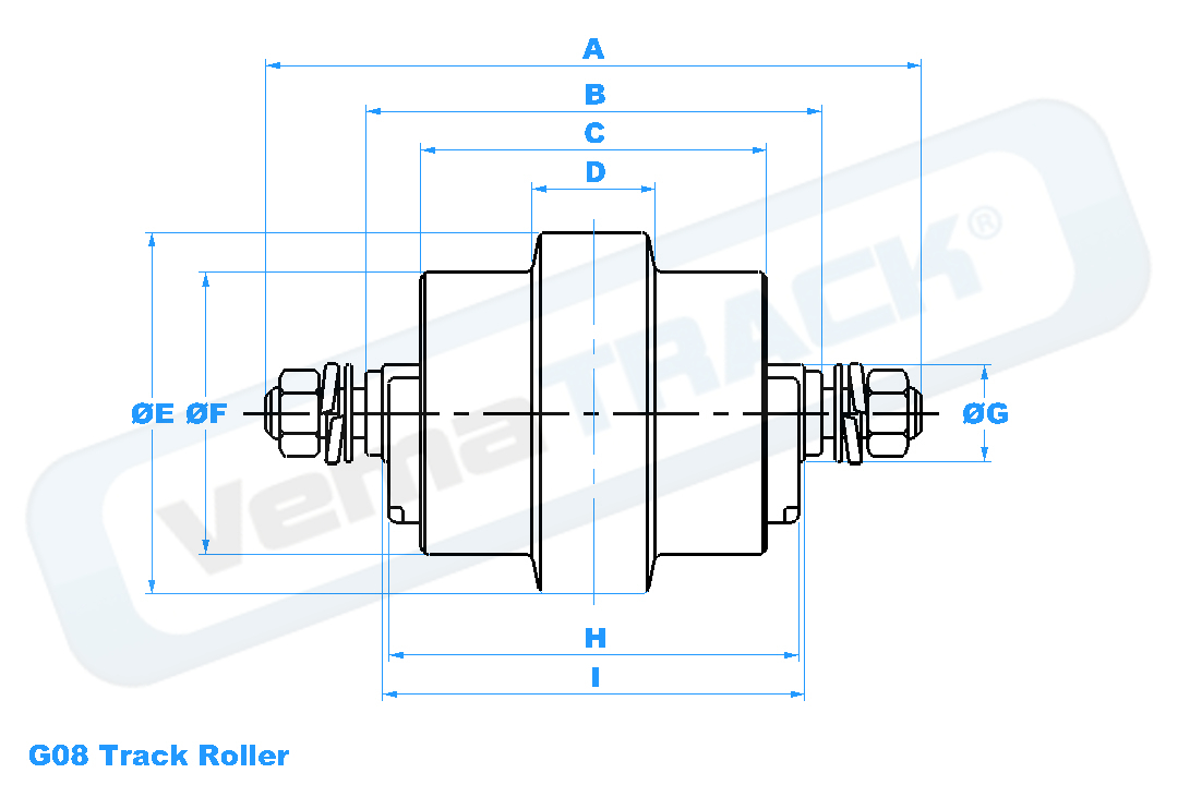 GALET INFÉRIEUR (= ref origine K1007947A) Galet à flasque centrale avec diamètre de flasque de 140mm et un écrou M24 de chaque coté