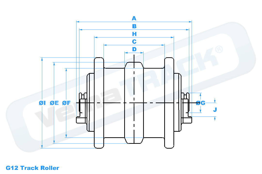 +184556 GALET INFERIEUR Galet à triple flasque avec deux flasques extérieur de 138mm de diamètre. Et une flasque centrale de 135mm de diamètre Tenu avec 1 boulon M18x2.5 de chaque coté