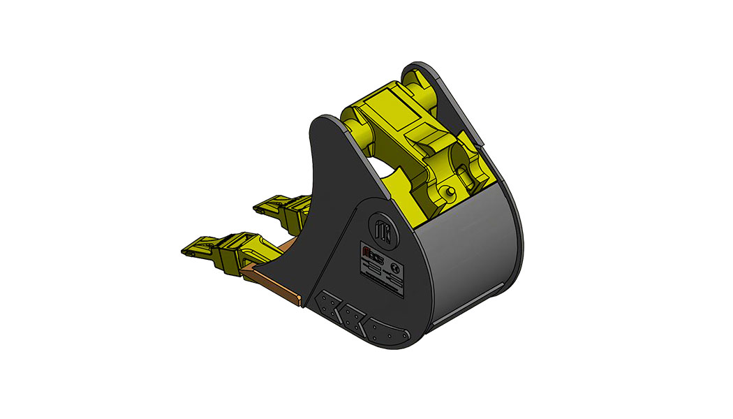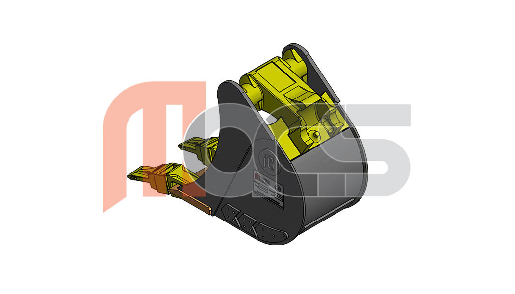 MACS Godet de tranchée de 200mm VARIATIC compatible avec attache type Morin Module 0. Équipé de 2 dents type V13 SYL Poids: 26kg Capacité 16l