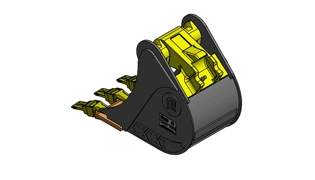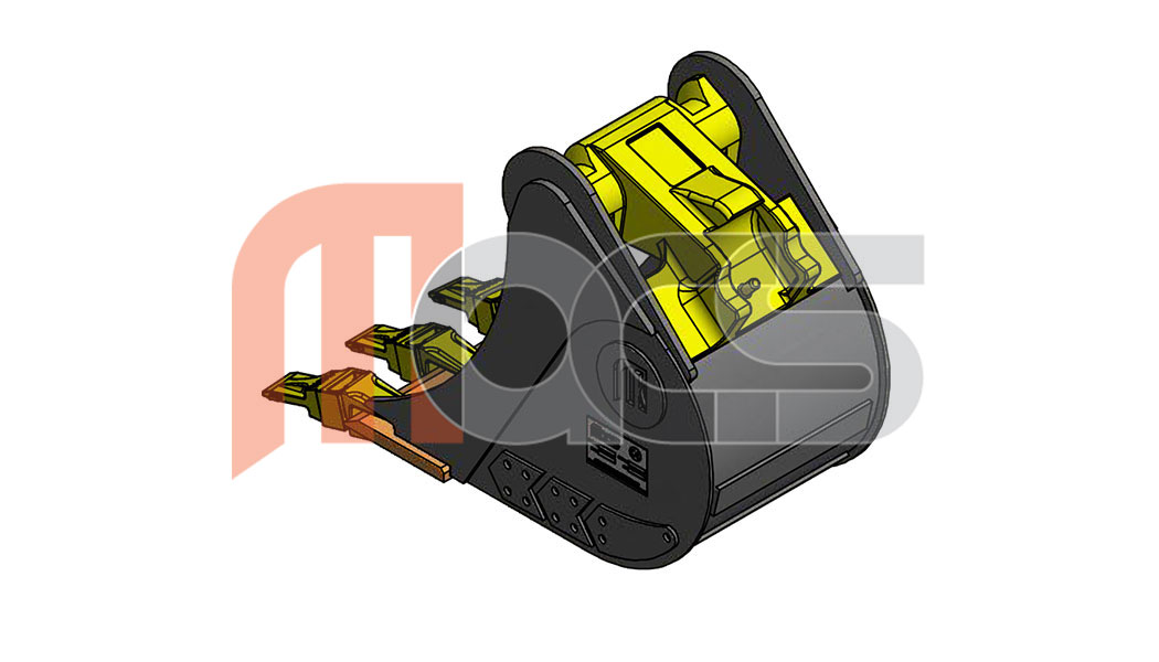 MACS Godet de tranchée de 260mm VARIATIC compatible avec attache type Morin Module 1. Équipé de 3 dents type V13 SYL Poids: 51kg Capacité 36,6l