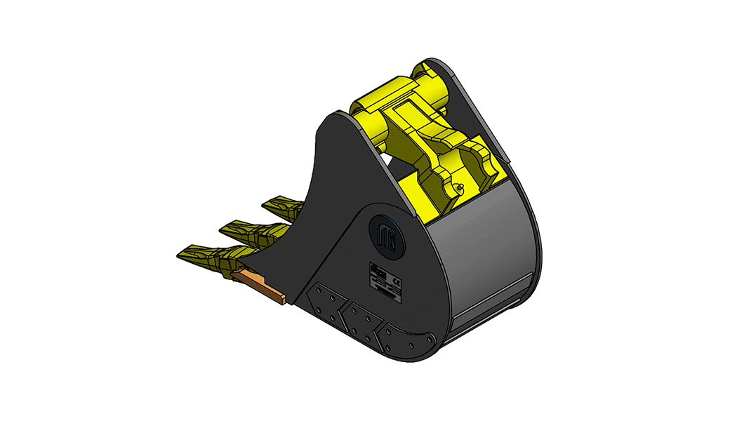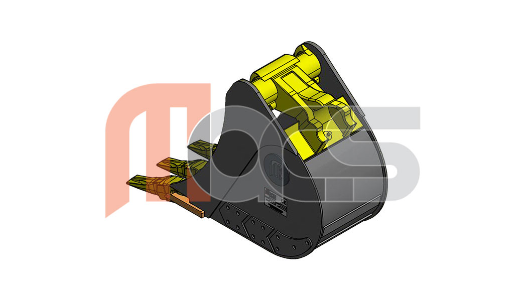MACS Godet de tranchée de 300mm VARIATIC compatible avec attache type Morin Module 2. Équipé de 3 dents type V17 TYL Poids: 78kg Capacité 56l