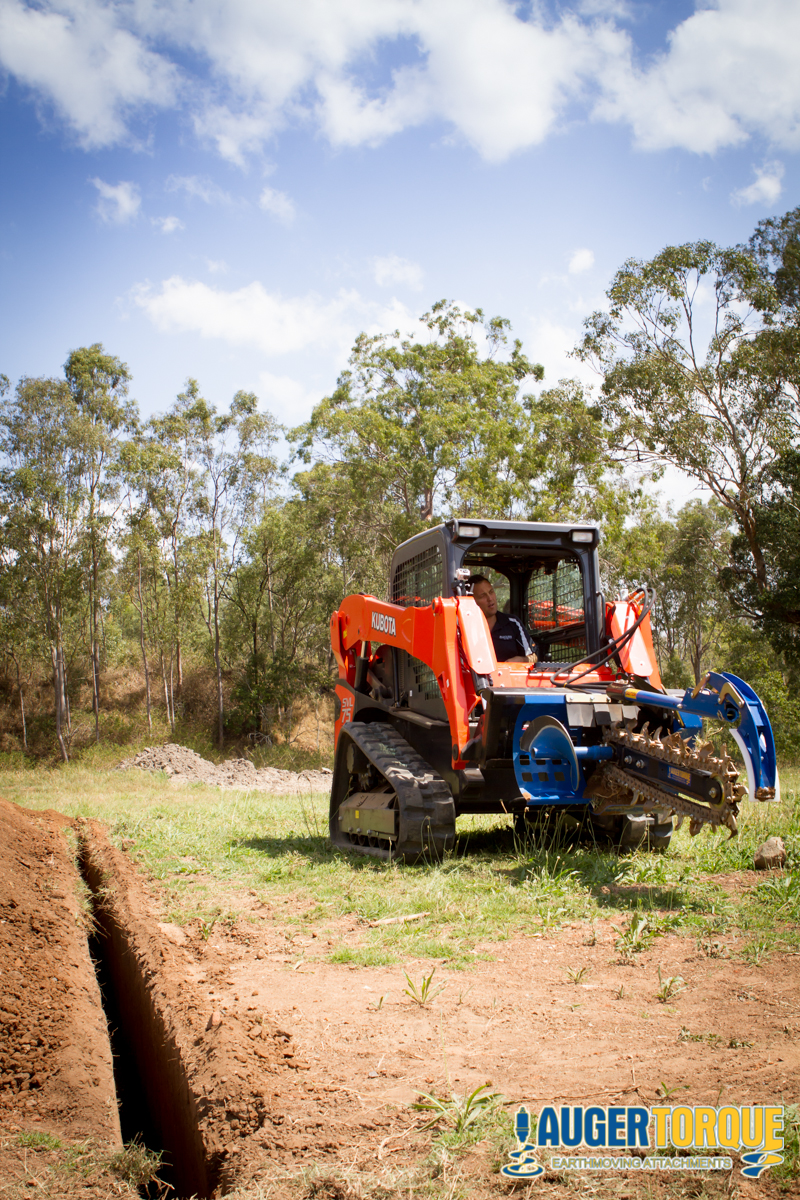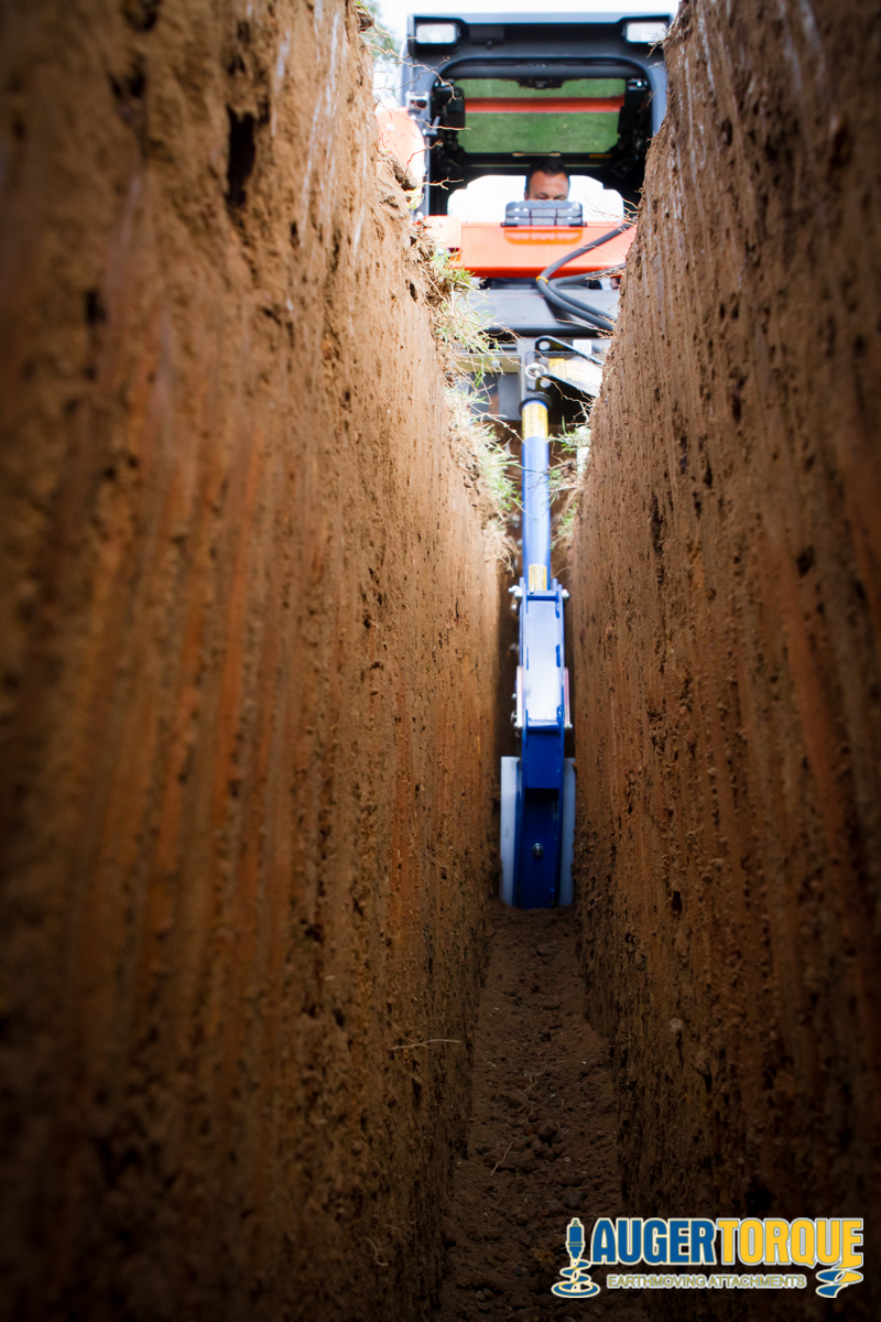 AUGER TORQUE MT900DD TRANCHEUSE ENTRAÎNEMENT DIRECT Pour chargeuses compactes et pelles de 3 à 5 T, avec système de nettoyage de la tranchée et flexibles. Pour tranchées de 600 à 900 de profondeur. Options de chaîne: 100mm, 150mm, 200mm, 250mm et 300mm Nécessite un débit minimum de 30l à 75 lpm pour une pression de 180 à 240 bars. Fourni avec flexibles.
