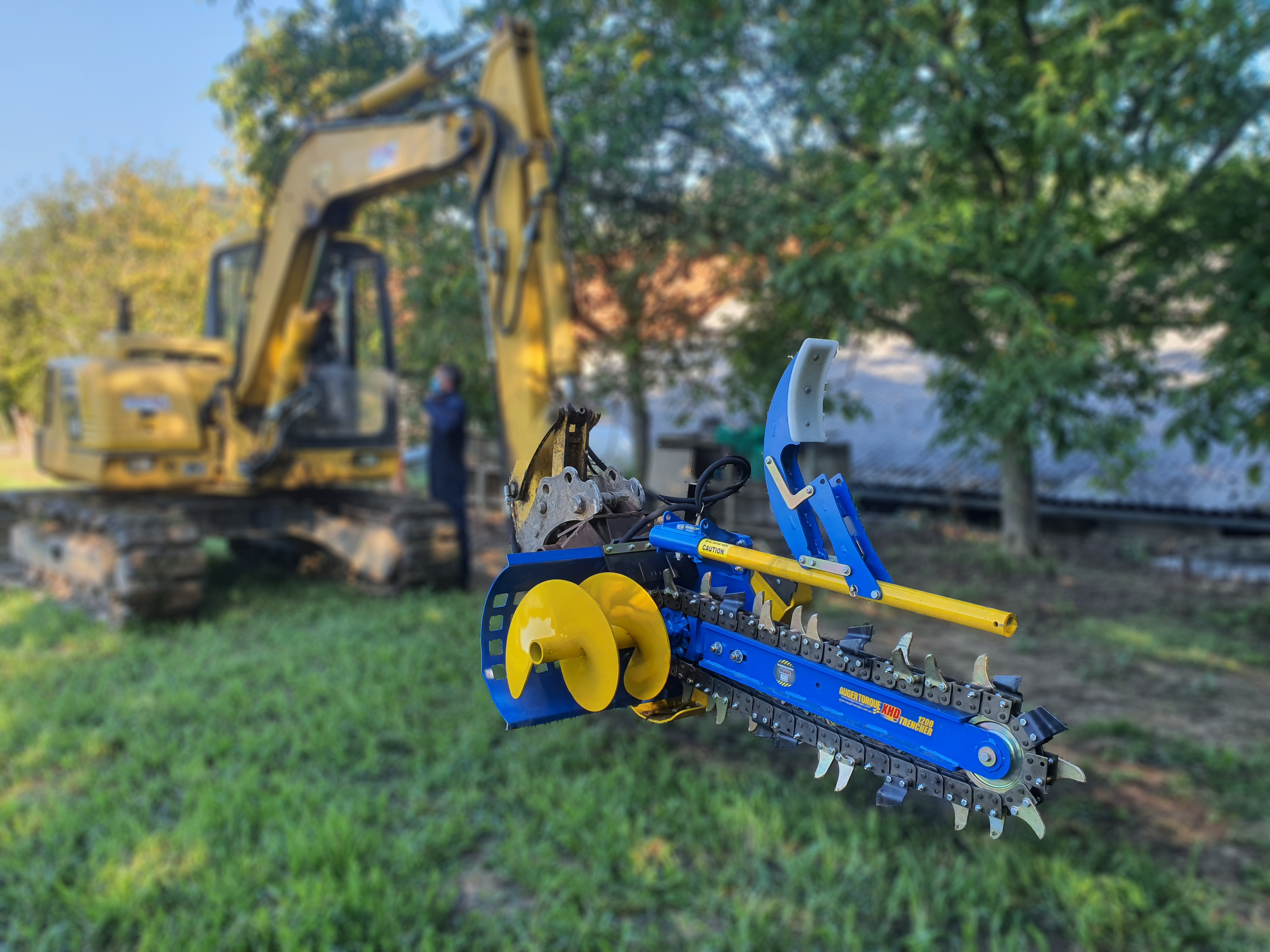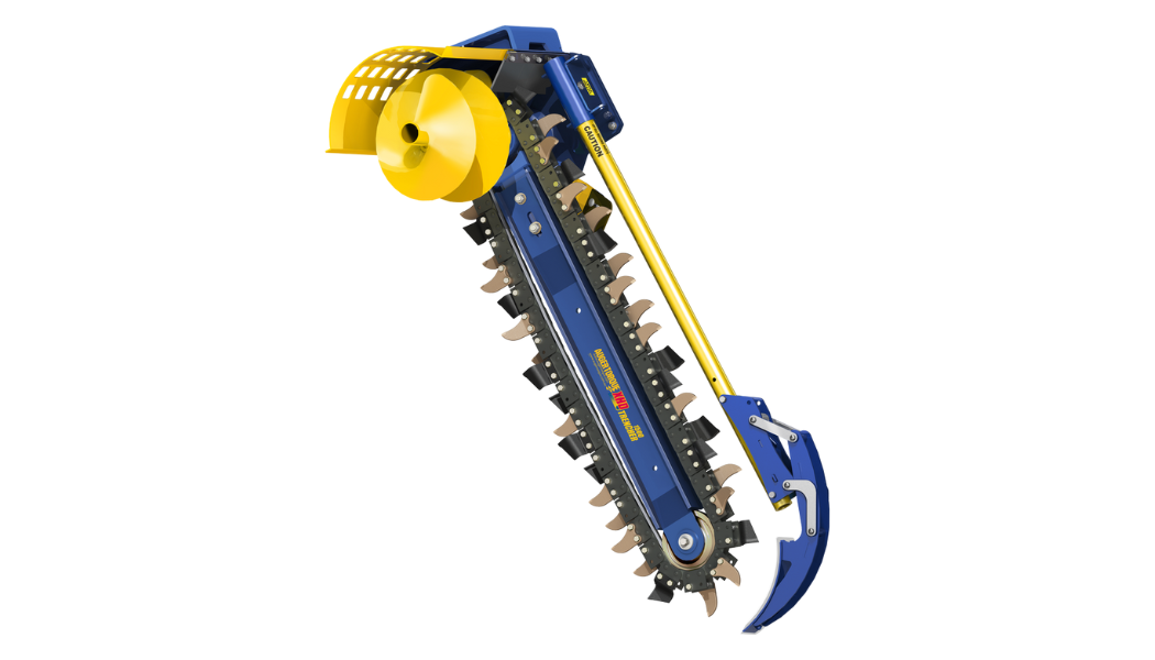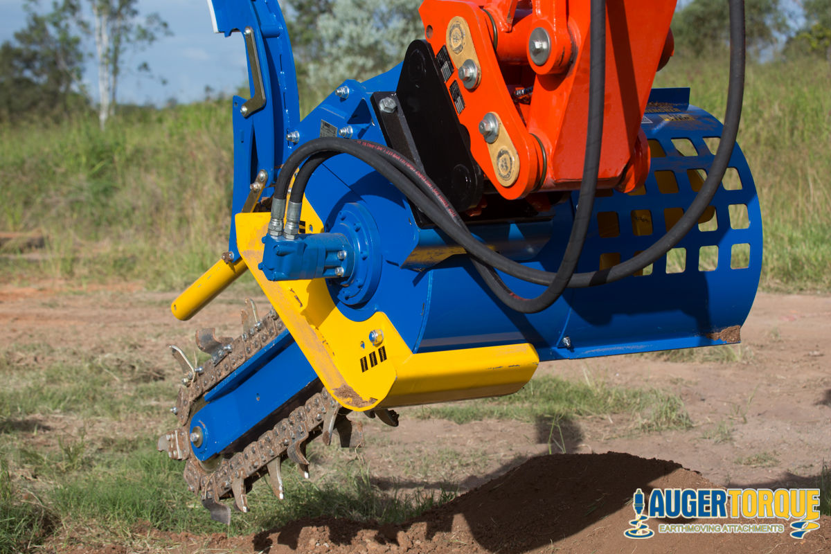 TRANCHEUSE XHD 1500 AUGER TORQUE Pour tractopelles, chargeur compact et pelle de 5 à 10 T, avec système de nettoyage de la tranchée et flexibles. Nécessite un débit minimum de 80l/min pour une pression de 180 à 240 bars. TRANCHEUSE XHD 1500 AUGER TORQUE Pour tractopelles, chargeur compact et pelle de 5 à 10 T, avec système de nettoyage de la tranchée et flexibles. Pour tranchées de 1000 à 1500 de profondeur. Options de chaîne: 150mm et 200mm Nécessite un débit minimum de 80l à 115 lpm pour une pression de 180 à 240 bars. Fourni avec flexibles