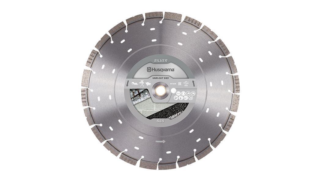 Disque HUSQVARNA VARI-CUT S65 diamètre 350 mm - 534972520 Le Vari-Cut S65 de la série Silver offre une performance de coupe supérieure pour les blocs de construction et d'autres matériaux abrasifs grâce à trois types de segments qui évitent l'usure excessive. Il est conçue pour une coupe douce et rapide du béton, y compris le béton armé, avec des indicateurs visuels pour la gestion de la lame. La hauteur de chaque segment est de 12 mm. L'alésage du disque est de 25,40 mm. Diamètre 350 mm Poids 2,5 kg