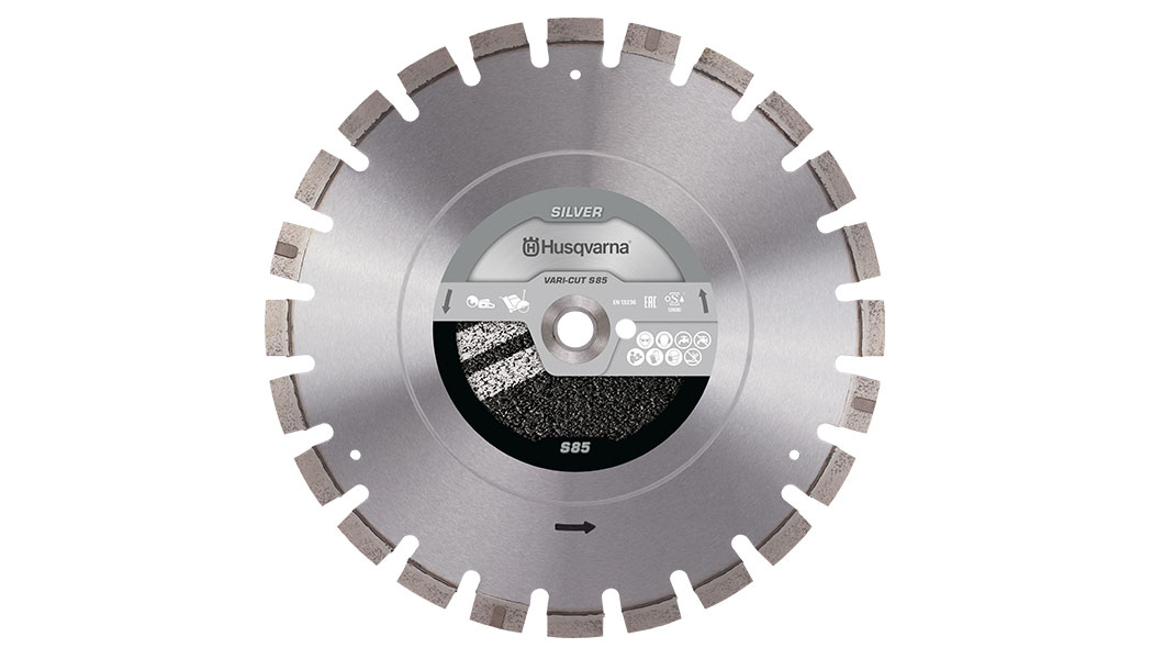 Disque HUSQVARNA VARI-CUT S85 diamètre 300 mm - 579817710 Le Vari-Cut S85 de la série Silver offre une performance de coupe supérieure pour les blocs de construction et d'autres matériaux abrasifs grâce à trois types de segments qui évitent l'usure excessive. Il est conçue pour une coupe douce et rapide du béton, y compris le béton armé, avec des indicateurs visuels pour la gestion de la lame. La hauteur de chaque segment est de 10 mm. L'alésage du disque est de 25,40 mm. Diamètre 300 mm Poids 2 kg