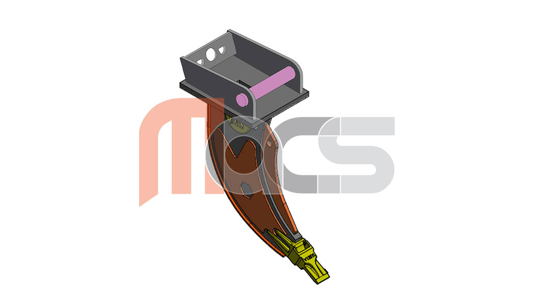 MACS FLEXI SYSTEM DENT DE DEROCTAGE PELLE 2,0 - 3,9 TONNES Fourni avec dent interchangeable type ESCO V13 SYL Avec renforts et ailette de protection en HARDOX Longueur utile approx 580mm. Épaisseur 45mm Avec attache LEHNHOFF SW03 Non réversible