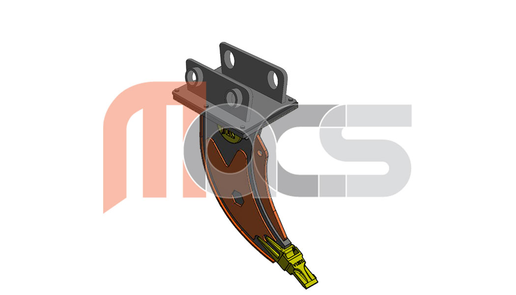 MACS FLEXI SYSTEM DENT DE DEROCTAGE PELLE 4,0 - 5,9 TONNES Fourni avec dent interchangeable type Esco V17 SYL Avec renforts et ailette de protection en HARDOX Longueur utile approx 665mm. Épaisseur 50mm Dimensions à confirmer par le client : Axe 40mm / balancier mm / entraxes mm