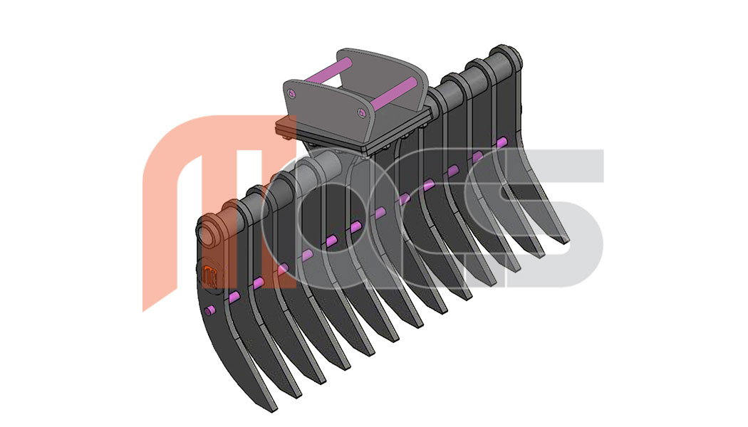 MACS Râteau pour machine jusqu'à 9 tonnes Largueur 1550mm, 16 dents Épaisseur de dents = 25mm, espacement entre les dents = 75mm Poids approx 292kg Avec attache MARTIN M10