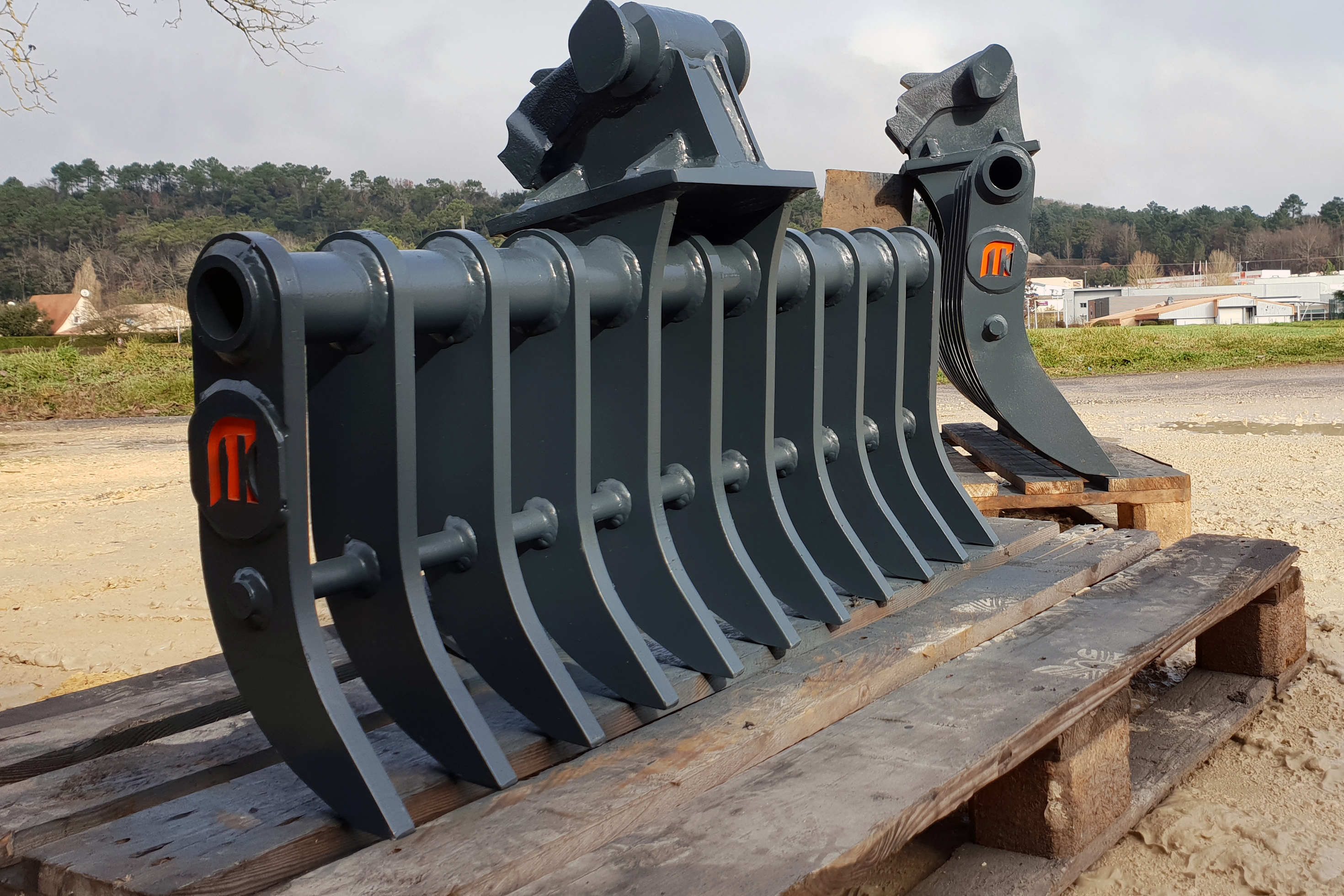 MACS Râteau pour machine jusqu'à 9 tonnes Largueur 1550mm, 16 dents Épaisseur de dents = 25mm, espacement entre les dents = 75mm Poids approx 292kg Avec oreilles standard en axes de 50mm (axes libre fournis) Dimensions à confirmer par le client : Axe 50mm / balancier mm / entraxes mm