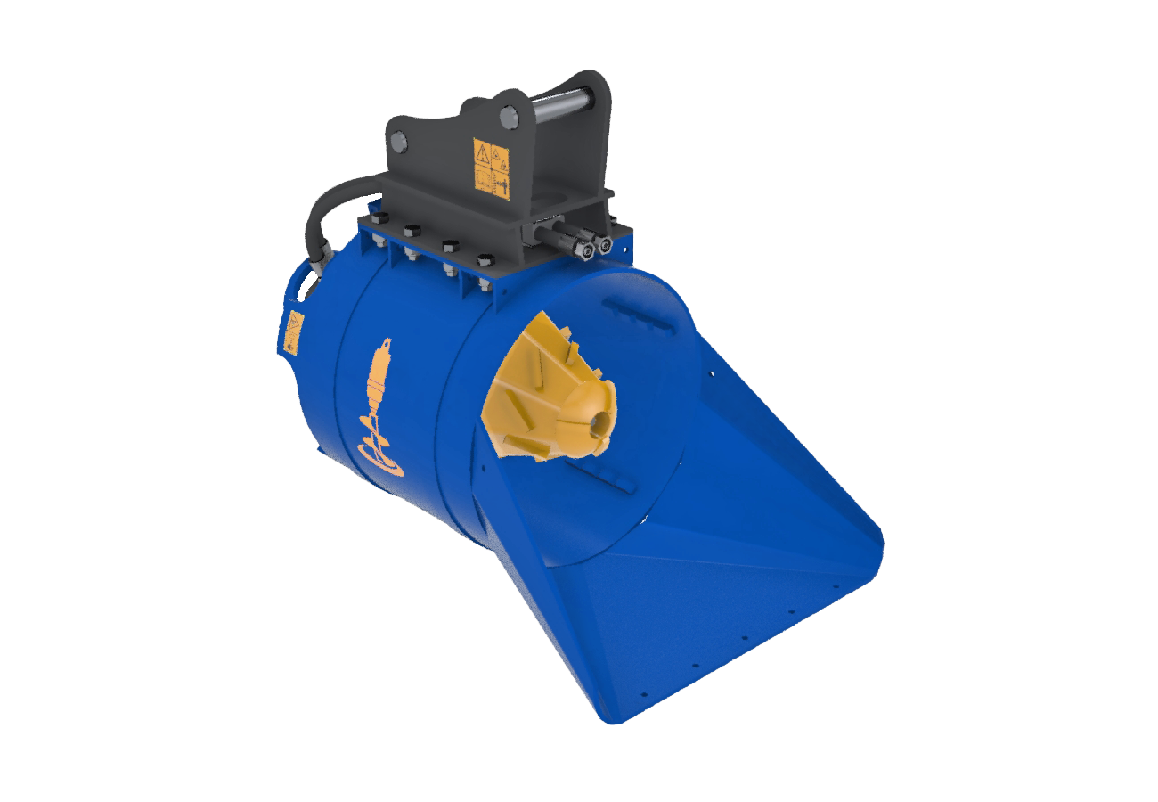 Godet concasseur AugerTorque pour recycler les débris sur chantier. Conçu pour machines de 5T à 10 tonnes. Idéal pour monter sur les mini pelles, excavatrices, tracto pelles, télescopiques, chargeuses compacts et les multi outils Poids du porteur: 5-10T Gamme de couple: 6320-10112 Nm Plage de pressions d’huile: 150-240 bar Plage de débit d’huile: 50-150lpm Plage de vitesse: 26-57 rpm Longueur de l’unité: 1300mm Largeur de l’unité: 761mm Hauteur de l’unité : 629mm Diamètre du tambour: 600mm Poids: 376kg