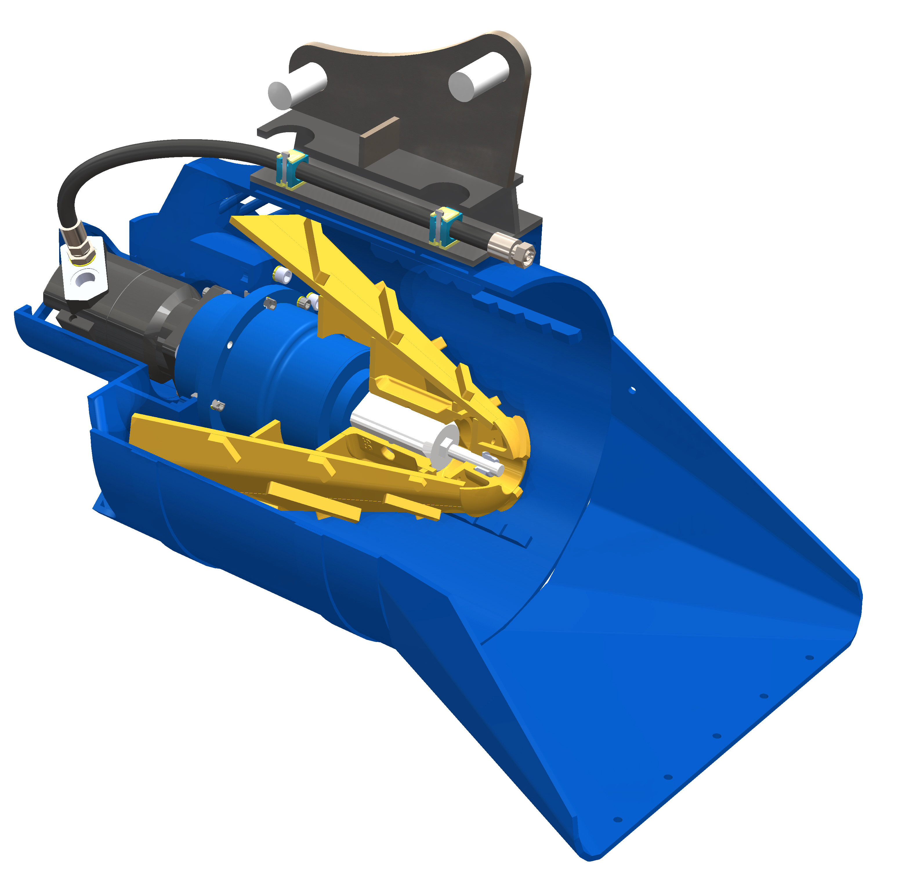 Godet concasseur AugerTorque pour recycler les débris sur chantier. Conçu pour machines de 5T à 10 tonnes. Idéal pour monter sur les mini pelles, excavatrices, tracto pelles, télescopiques, chargeuses compacts et les multi outils Poids du porteur: 5-10T Gamme de couple: 6320-10112 Nm Plage de pressions d’huile: 150-240 bar Plage de débit d’huile: 50-150lpm Plage de vitesse: 26-57 rpm Longueur de l’unité: 1300mm Largeur de l’unité: 761mm Hauteur de l’unité : 629mm Diamètre du tambour: 600mm Poids: 376kg
