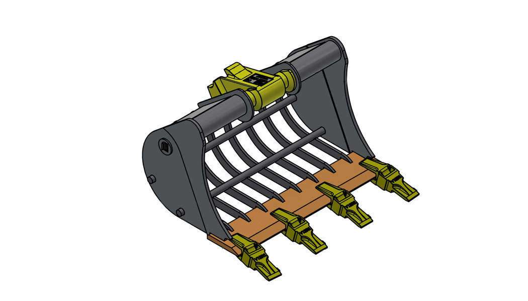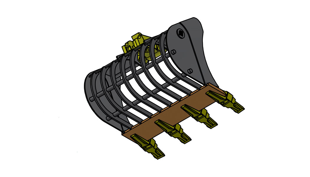 GODET SQUELETTE 600MM MORIN MODULE 0 Rétro Claire-Voie 4 Dents Type ESCO V13SYL - Pas 60 mm - poids 51kg Accessoire permettant de tamiser les gravats et les cailloux