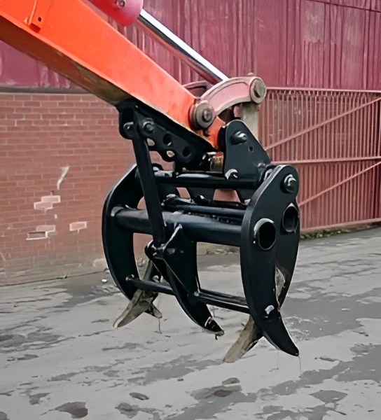 GRAPPIN MÉCANIQUE 3+2 POUR PELLE JUSQU'À 8 T - Le grappin mécanique 3+2 (3 dents x 2 dents) est monté sur l'extrémité du bras et de la biellette du godet à l'identique d'un godet. Il peut être également fixé sur une attache rapide (coupleur) type 2 axes. La mâchoire supérieure mobile pivote sur l'extrémité du bras par la biellette de godet exactement de la même manière qu'un godet. La mâchoire fixe inférieure est connectée par une barre de poussée à 3 positions, soudée sur le dessous du bras de l’engin. - Le grappin est fourni avec le support à souder 3 positions, la barre de poussée, et les axes. - Le grappin est fabriqué avec des oreilles standard (pour une montage directement sur le bras de la machine ou sur une attache rapide deux axes - axes pas comprises). Pour les attaches rapides et coupleurs autre que 2 axes, merci de contacter notre équipe commercial - Merci de compter approx 3-4 semaines de fabrication pour votre grappin