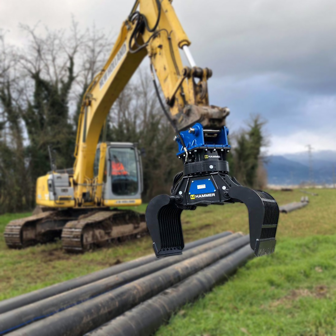 GRAPPIN/ PINCE DE TRI HYDRAULIQUE HAMMER GR45 STANDARD Garantie 12 mois Pour pelles 5.0-12.0t. Débit : 25lpm. Pression de service : 250 bar. Rotation 360° Débit d'huile requis rotation:15-25lpm. Pression de la rotation : 100 bar. Poids de travail: 480kg Ouverture 1500mm Pour toutes informations supplémentaires, consultez le manuel FLEXIBLES 3/8 TUYAU 2SN 1.6 Mètres INCLUS