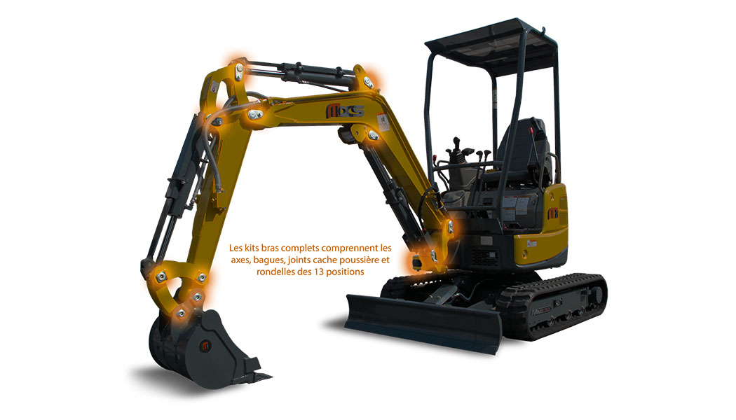 KIT SPECIAL AXES ET BAGUES Pour les positions de 1 à 13 Comprenant: - 16 axes - 29 bagues - 14 joints - 26 rondelles Dimensions à vérifier si attache autre que standard 2 axes: diamètre 40mm - 228mm de sous la tete jusqu'au bout. - Tête rectangulaire type KUBOTA distance centre trou - centre axe 65mm