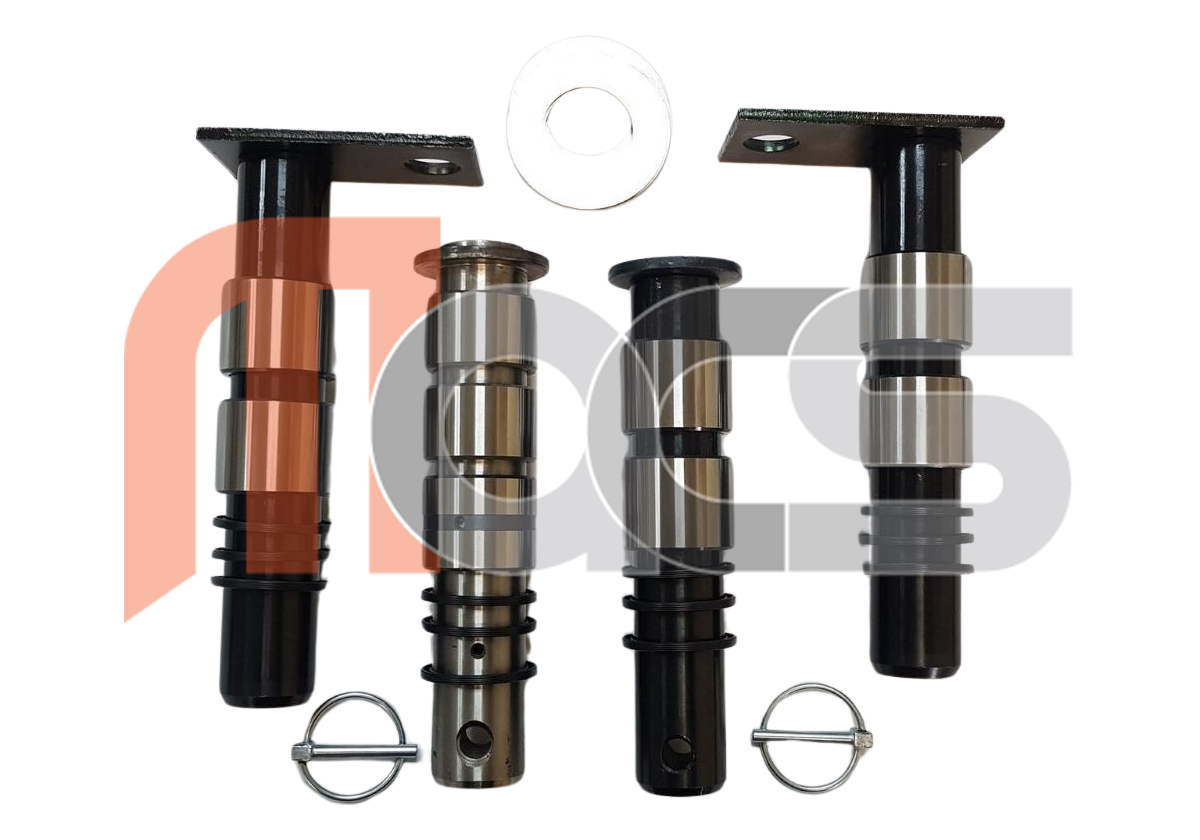 KIT GODET AXE ET BAGUE 8/9/10/11/10 Vérin Ce kit comprend : - Les axes positions : 8, 9, 10, 11 (4 au total) - Les bagues positions : 8, 9, 10, 11 et 10 vérin (9 au total) - Les joints cache poussière positions : 8, 9, 10, 11 et 10 vérin (10 au total) - Les rondelles positions : 8, 9, 10, 11 (8 au total) - 2 goupilles Dimensions des axes position 9 & 11: diamètre 40mm - graissé - tête rectangulaire type KUBOTA avec trou de maintien - longueur dessous la tête jusqu'au bout 233mm Dimensions des axes position 8 & 10: diamètre 40mm - graissé - tête ronde - longueur sous la tête jusqu'au centre trou de maintien 201mm (1 trou de graissage pour l'axe position 8 - 2 trous de graissage pour l'axe position 10)