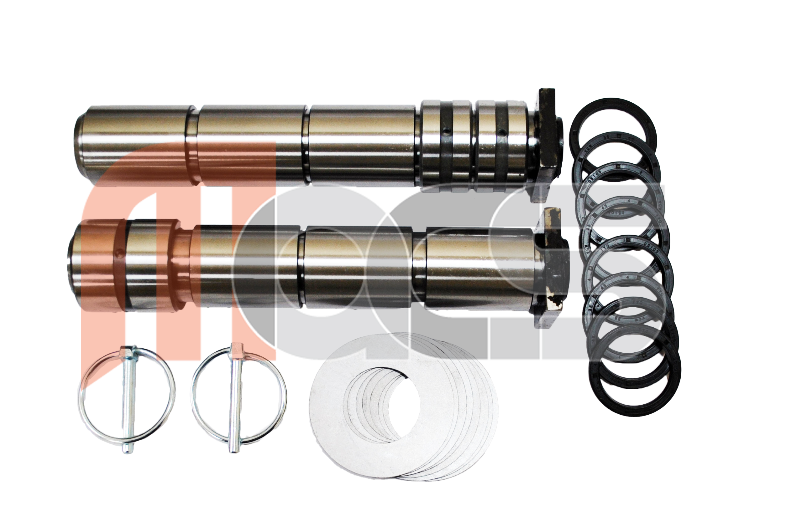 KIT GODET AXE ET BAGUE 8/9/10/11/10 Vérin Ce kit comprend : - Les axes positions : 9, 11 (2 au total) - Les bagues positions : 8, 9, 10, 11 et 10 vérin (9 au total) - Les joints cache poussière positions : 8, 9, 10, 11 (8 au total) - Les rondelles positions : 8, 9, 10, 11 (8 au total) - 2 goupilles ATTENTION : Les axes P8 et P10 sont soudés à la biellette de vérin qui n'est pas comprise dans le kit, tarifs sur demande. Les bagues positions 9 & 11 sont les bagues standard et non avec flasque type 'chapeau melon'. Merci de confirmer avant de commander et revenir vers votre commercial si vous avez les bagues avec flasques Dimensions des axes position 9 et 11 à vérifier pour attache rapide autre que standard 2 axes: diamètre 35mm - tête carrée - longueur dessous la tête jusqu'au centre trou de maintien 207mm - longueur dessous la tête jusqu'au centre trou de graissage 98mm - axe graissé - longueur total 222mm