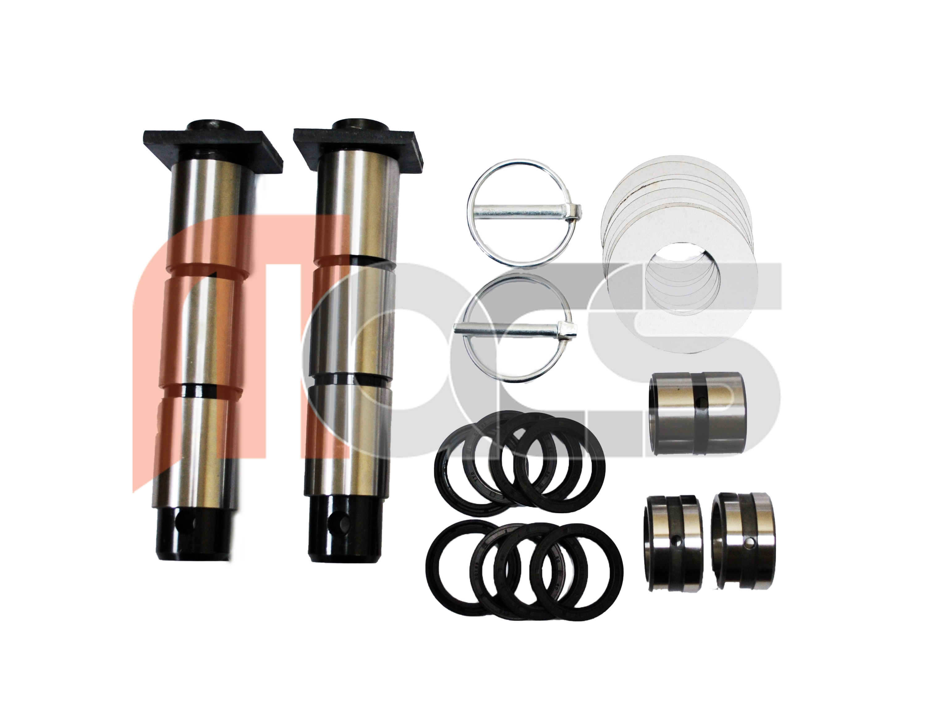 KIT GODET AXE ET BAGUE 8/9/10/11/10 Vérin. Ce kit comprend : - Les axes positions : 9,11 (2 au total). - Les bagues positions : 8, 9, 10, 11 et 10 vérin (9 au total). - Les joints cache poussière positions : 8, 9, 10, 11 (12 au total). - Les rondelles positions : 8, 9, 10, 11 (8 au total). - 2 goupilles. ATTENTION : Les axes P8 et P10 sont soudés à la biellette de vérin qui n'est pas comprise dans le kit, tarifs sur demande. Dimensions des axes 9 & 11 à vérifier si vous avez une attache rapide / coupleur: Ø 30mm, axe graissé - longueur à partir de sous la tête jusqu'au centre trou de fixation 155mm.
