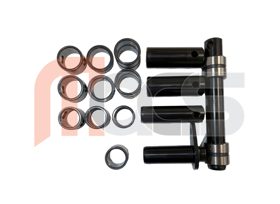 KIT PIED DE FLECHE AXE ET BAGUE 1/2/12/13 Conforme aux dimensions et caractéristiques d'origine de la pelle - Axes positions 1,2,12 (x2),13 (5 en total) - 12 bagues