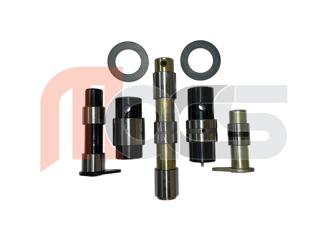 KIT PIED DE FLECHE AXE ET BAGUE 1/2/12/13 Conforme aux dimensions et caractéristiques d'origine de la pelle - Axes positions 1,2,12 (x2),13 (5 en total) - Bagues positions 1 (x3),2 (x2),12 (x2),13 (1) (8 en total) - Rondelles position 12 (2 en total)