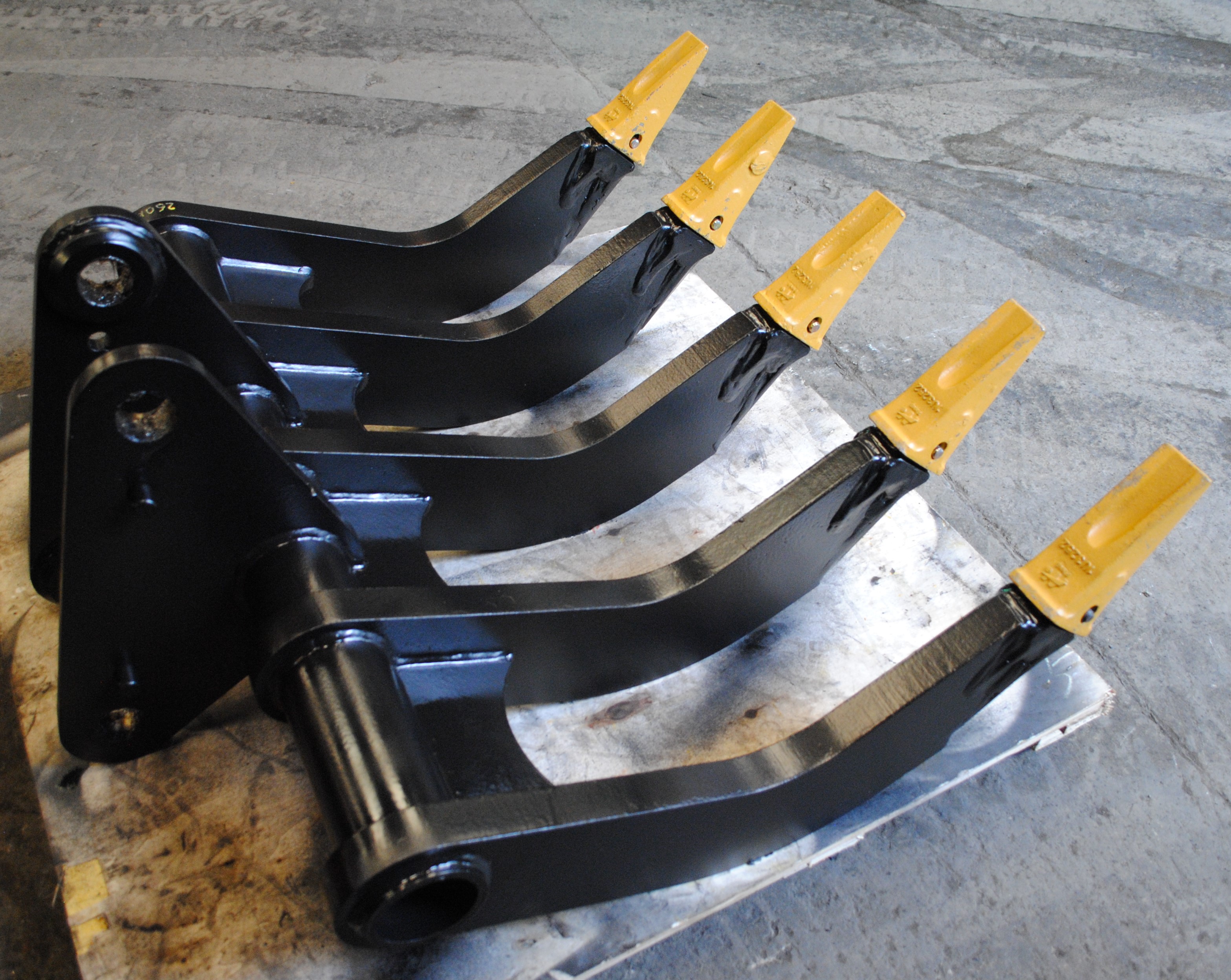 MACS Multi Ripper pour vos travaux en terrains rocheux, l'arrachage des vignes, le déracinement et trier des gravats etc Pour pelle de 2,0-3,9 tonnes Largeur 460mm Espacements centre au centre des dents 217mm 3 griffes de 26mm (avec renfort) équipé de trois dents à clavetter type V13 SYL Longueur utile approx 603mm. Fabriqué en acier SJ335 (ST52.3) et renforcé avec les plaques en HARDOX HB400 Poids: 78kg Fourni avec un plat: prêt à souder vos oreilles / kit de modification par vos soins
