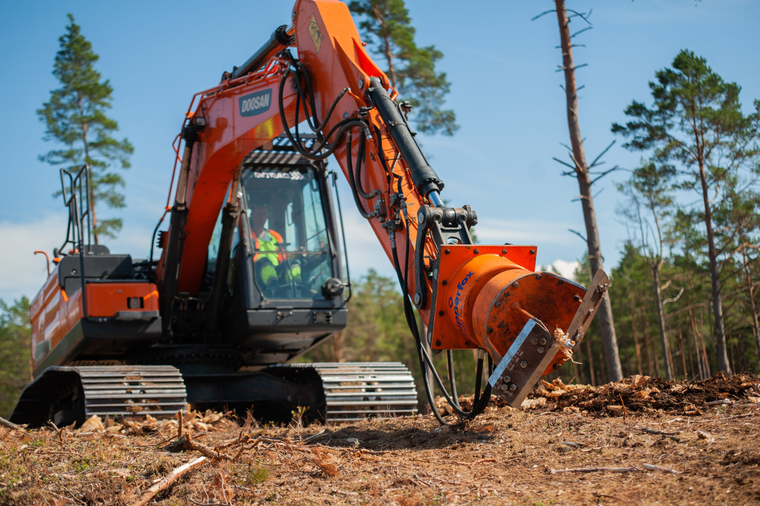 Raboteuse de Souche Dipperfox SC600 La technologie de pointe de Dipperfox permet de raboter les souches d’arbres en quelques secondes. Le système de contrôle des engrenages breveté, ajuste automatiquement la vitesse et le couple en fonction de la résistance de la souche, du sol ou des racines. Boite de vitesse planétaire - 2 vitesses à enclenchement automatique Couple Max - 16,900 Nm Vitesse Max - 57 RPM Pour pelles de 6 à 14 tonnes Pour tractopelles 6 à 14 tonnes Pour mini chargeuses 2 à 6 tonnes Pour autoporteuses 2 à 6 tonnes Rendement Max. 60 souches/heure Épaisseur des copeaux 5-15mm Largeur de coupe - 600mm Profondeur de coupe (niveau du sol) - 700mm Pression - 150-250 bar Débit d'huile 65-150 l/min Poids 285kg Fourni avec : 2 lames dentelées en Toolox 44 2 manomètres Disques de meulage pour l'affûtage des lames Outil de mesure d'angle pour l'affûtage des lames Drain obligatoire Flexibles non compris