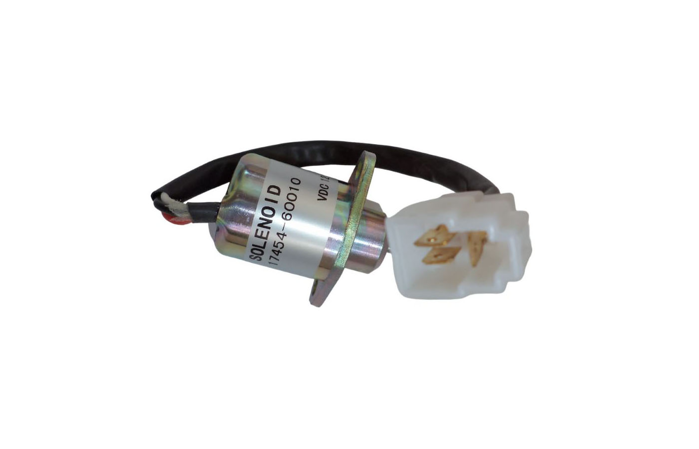 STOP SOLENOID ÉLECTROVANNE ARRÊT MOTEUR (Coupure moteur) ADAPTABLE Compatible avec les moteurs suivants: Kubota Aussi que les numéros de pièce d'origine suivantes: 17454-60010 Attention - pour les électrovannes arrêt moteur, merci de vérifier les informations fourni et la photo associé. Si vous n'êtes pas sûr, merci de contacter notre équipe commercial avec les informations de votre alternateur, moteur ainsi que la marque et modèle de votre machine