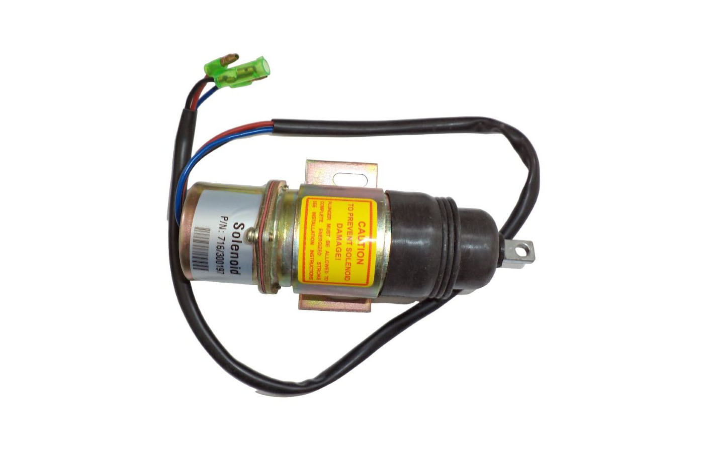 STOP SOLENOID ÉLECTROVANNE ARRÊT MOTEUR (Coupure moteur) ADAPTABLE Compatible avec les moteurs suivants: Isuzu/JCB Aussi que les numéros de pièce d'origine suivantes: 716/30097 Attention - pour les électrovannes arrêt moteur, merci de vérifier les informations fourni et la photo associé. Si vous n'êtes pas sûr, merci de contacter notre équipe commercial avec les informations de votre alternateur, moteur ainsi que la marque et modèle de votre machine
