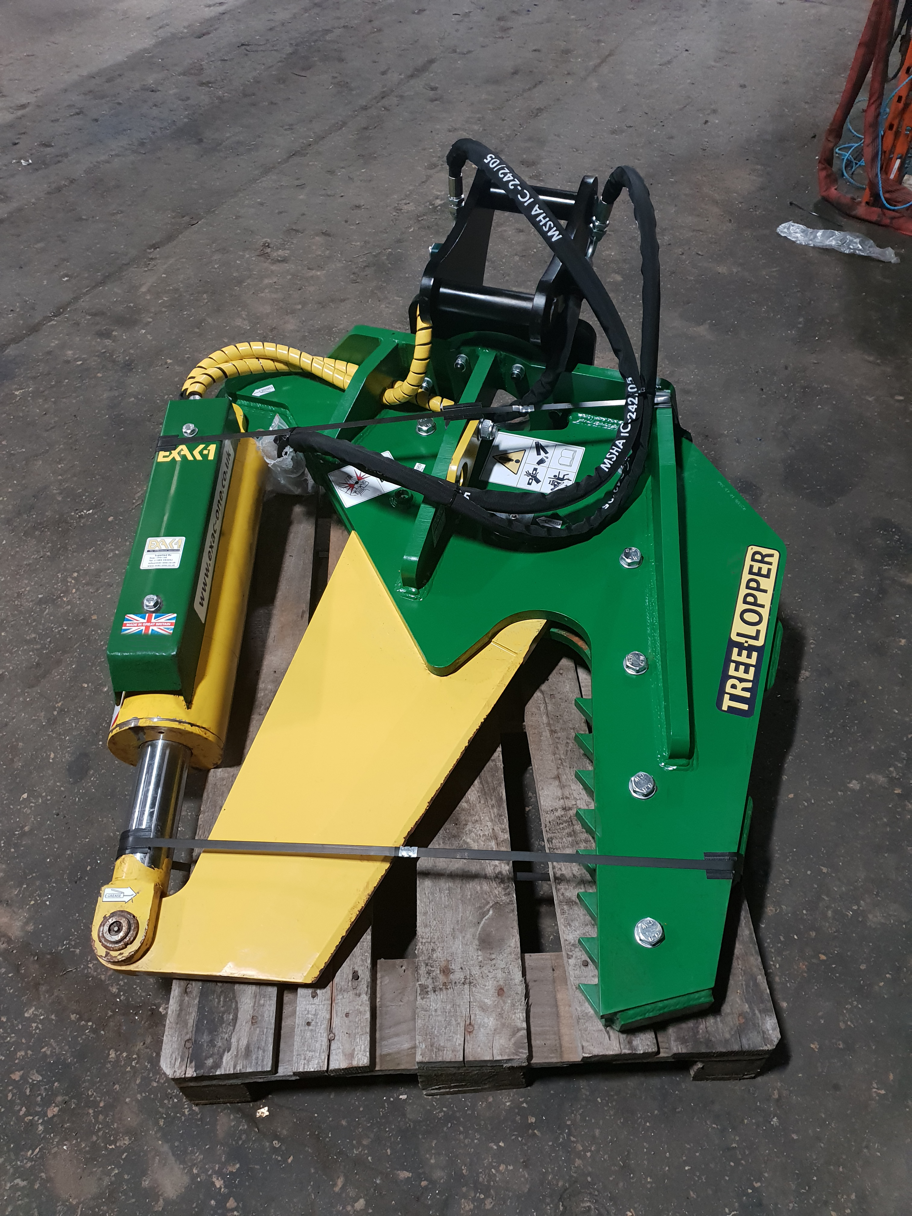 TREE MASTER TL150 POUR PORTEUR 3.5-8 T SANS ROTATION Cisaille hydraulique pour arbre. Fabriquée en acier à haute résistance avec une seule lame de coupe, Nécessite un circuit hydraulique à double effet. Poids 270KG Débit 45L/MIN Pression 180-220 BAR Diamètre de coup maximum 300mm Dimensions H x L x D (mm) 350 x 900 x1450 FOURNI Avec attache type 2 axes - pour autres attaches, merci de demander un devis FOURNI AVEC FLEXIBLES