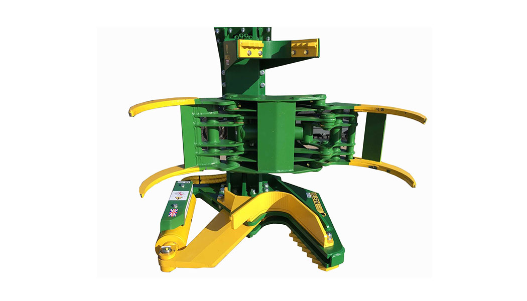 TREE MASTER TM300 POUR PORTEUR 7 - 14 T AVEC ROTATION 180° Grappin et Cisaille hydraulique pour arbre. Fabriquée en acier à haute résistance avec une seule lame de coupe, Nécessite un circuit hydraulique à double effet. Poids 690KG Débit 60-70L/MIN Pression 230 BAR Diamètre de coup maximum 300mm Dimensions H x L x D (mm) 1100 x 900 x1300 FOURNI Avec attache type 2 axes - pour autres attaches, merci de demander un devis FOURNI AVEC FLEXIBLES