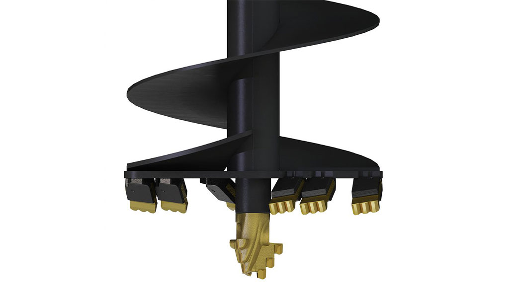 VRILLE S4 AUGER TORQUE 100mm. Dents MFT et Pilote d'excavation ROCHE EXTRA DIG pour sol Enrobé ou Roche Tendre Longueur 1,2m. Emmanchement Rond 65mm.