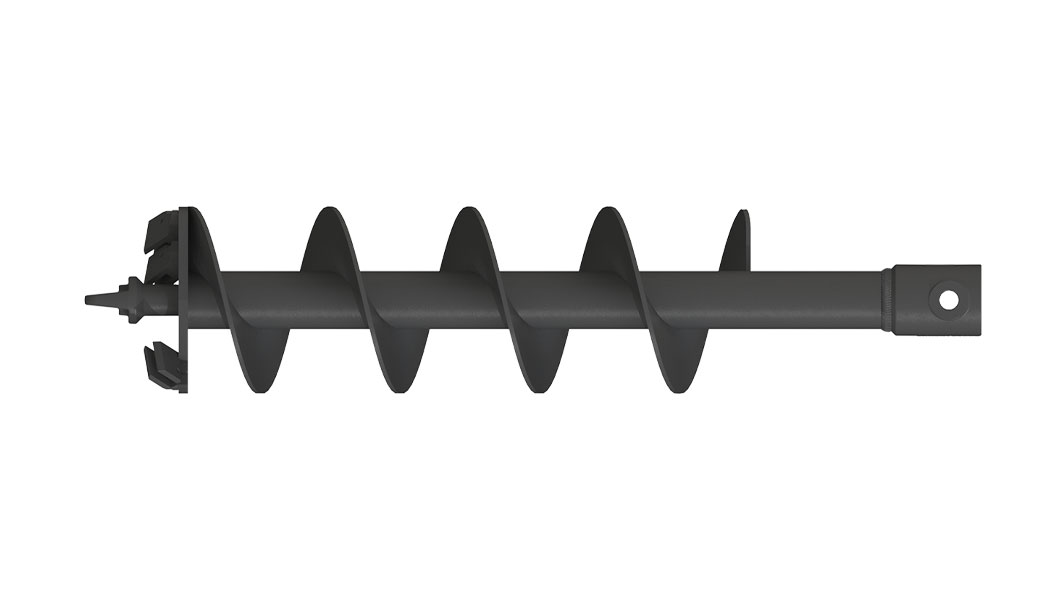 VRILLE S4 AUGER TORQUE 250mm. Dents MFT et Pilote d'excavation ROCHE EXTRA DIG pour sol Enrobé ou Roche Tendre Longueur 1,2m. Emmanchement Rond 65m