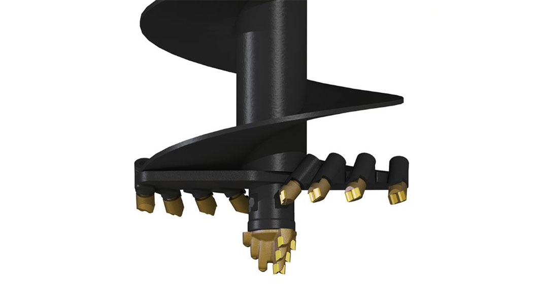 VRILLE S5 AUGER TORQUE 750mm. Dents roche et Pilote d'excavation ROCHE EXTRA DIG pour sol Enrobé ou Roche Tendre Longueur 1,5m. Emmanchement Carré 75mm.