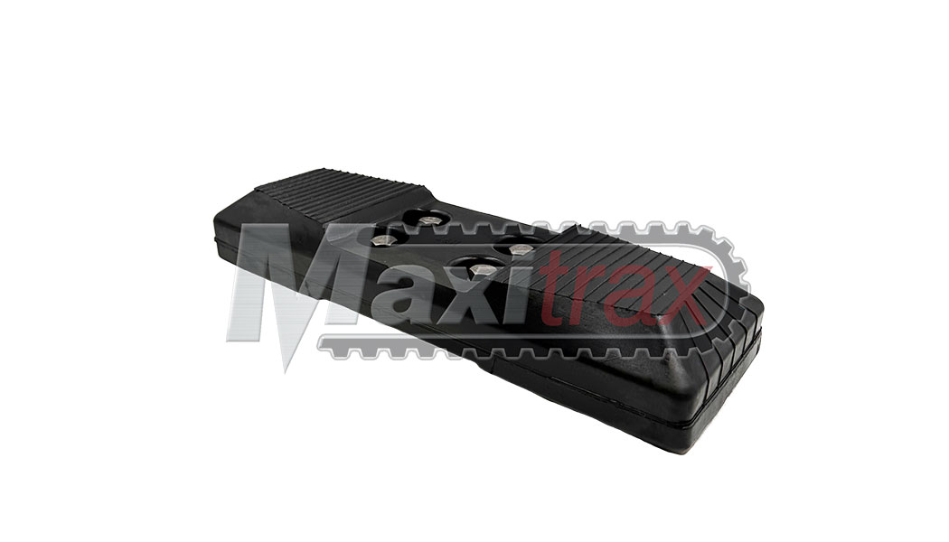 YC400A PATIN CAOUTCHOUC MAXITRAX ® A BOULONNER SUR LA CHAINE NUE - 400mm de large Qualité haut de gamme, fabrication avec 100% de caoutchouc naturel pour une résistance accrue et une durée de vie plus longue (pas d'alliage de synthétique) Entraxes boulons 80 x 104 x 46mm (boulonnerie fournie avec le patin et inclue dans le prix) Serrage des boulons : Vérifier que les boulons soient correctement vissés, avec un couple de 150 Newton mètre si une clé dynamométrique est utilisée. Ensuite, après 8h d'utilisation et en maintenance régulière, le couple de serrage est à contrôler. Ces patins sont faits pour des travaux spécifiques sur des routes ou des surfaces achevées et planes afin d'éviter tout dommage de ces surfaces avec les chenilles fer.