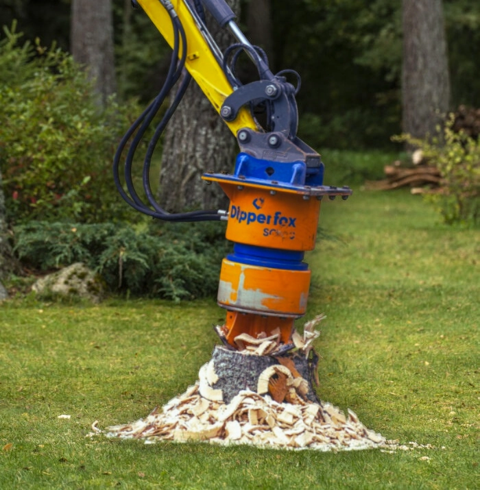 Dipperfox est un outil professionnel de broyage de souches pour les excavateurs de 5 à 30 tonnes.
