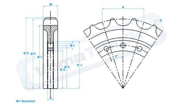 BARBOTIN 23 dents / 12 trous de boulons / 265mm diamètre intérieur Droit / rectiligne
