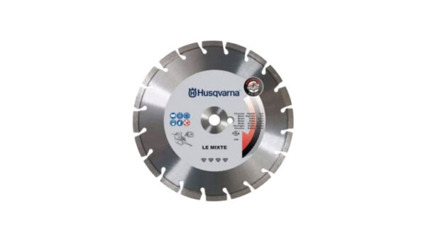 Disque diamant HUSQVARNA le Mixte diamètre 400 mm - 543121804 Ce disque est adapté pour le sciage du béton, qu'il soit armé ou non, de l'asphalte, du béton frais, des matériaux abrasifs et peut aussi servir occasionnellement pour le métal. Il est constitué de segments soudés au laser et est utilisable pour une coupe à sec ou sous arrosage. La hauteur de chaque segment est de 10 mm. L'alésage du disque est de 25,40 mm. Diamètre 400 mm Poids 2,5 kg