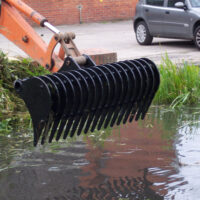 FLECO NEUF A FABRIQUER PELLES DE 6 à 8T Dimensions du client : Largeur du fleco cm , espacement entre les barres de cm, dents de mm, coté à boulonner MACHINE : Dimensions : axe mm/ balancier mm/ entraxes mm