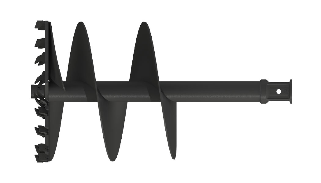 VRILLE S5 AUGER TORQUE 800mm. Dents roche et Pilote d'excavation ROCHE EXTRA DIG pour sol Enrobé ou Roche Tendre Longueur 1,5m. Emmanchement Carré 75mm.